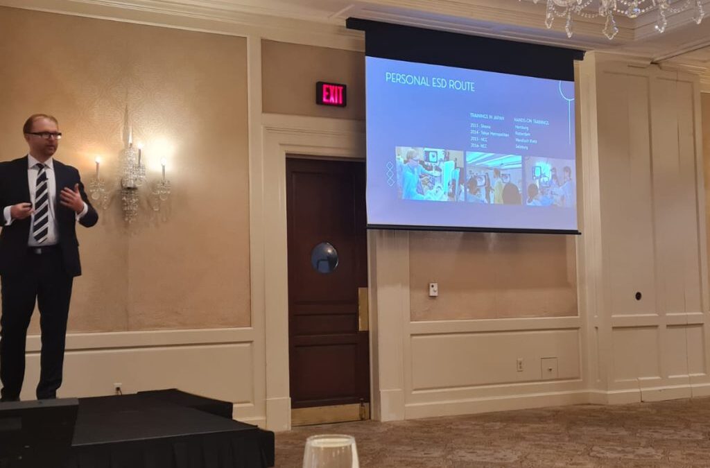 Miałem zaszczyt wygłosić wykład na temat endoskopowej dyssekcji podśluzówkowej w jelicie grubym. Ta nowoczesna, najmniej inwazyjna metoda leczenia zaczyna być wykonywana w Stanach Zjednoczonych. W ostatnich latach liczba zabiegów rośnie, choć nadal istnieje tam wiele problemów w pełnym wdrożeniu ESD do rutynowego schematu leczenia. Mogę śmiało powiedzieć, że nasi pacjenci w Polsce mają szerszy dostęp do tej metody 🙂
