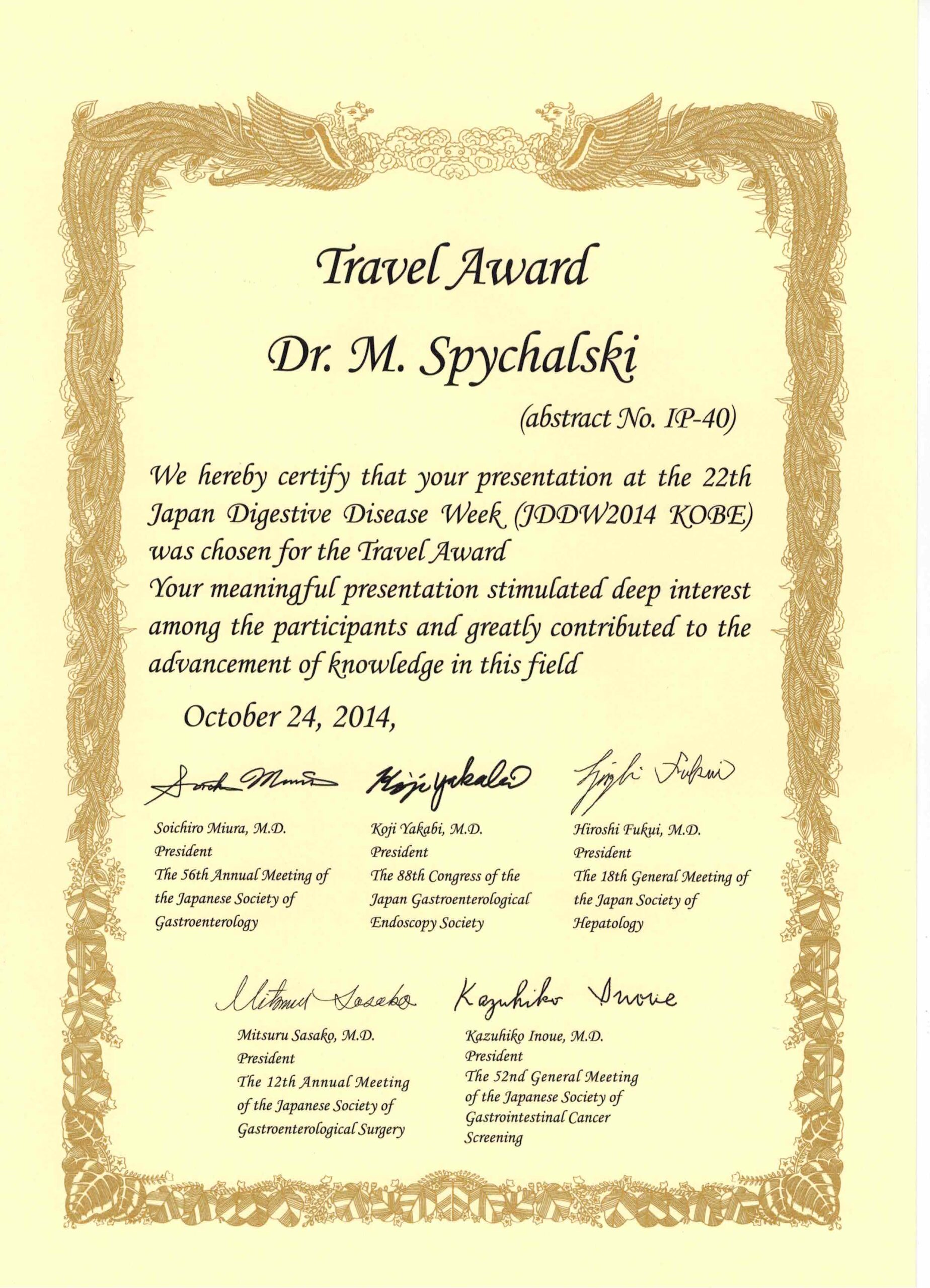 Małoinwazyjne techniki leczenia wczesnych postaci nowotworów m.in. endoskopową dyssekcję podśluzówkową uczyłem się podczas czterokrotnych pobytów w Japonii, a także na kursach w NIemczech, Austrii, Holandii i Turcji. Doświadczenia tam zdobyte pozwoliły mi na skuteczne wdrożenie tej techniki.