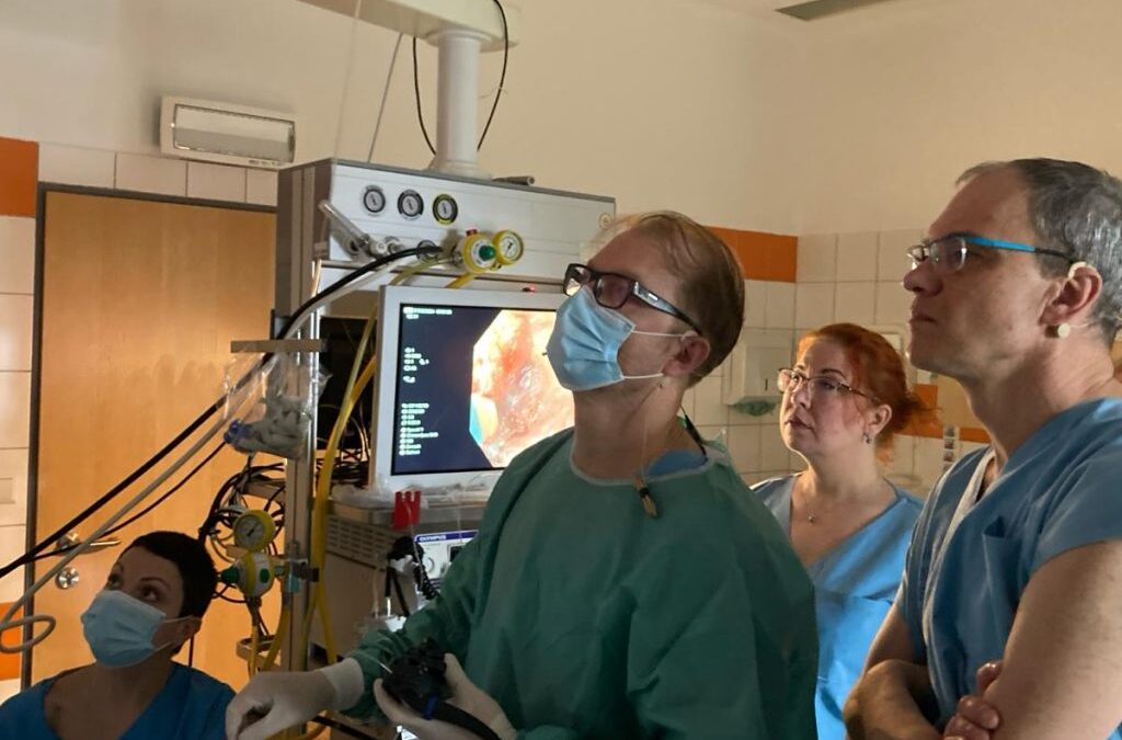 W tym roku miałem zaszczyt być uczestniczyć w tym wydarzeniu jako ekspert. Wykonałem dwa zabiegi endoskopowej dyssekcji podśluzówkowej — wczesnego raka żołądka oraz, po raz pierwszy w Czechach — wczesnego, okrężnego raka przełyku. Szczególnie ten drugi zabieg był wyzwaniem.